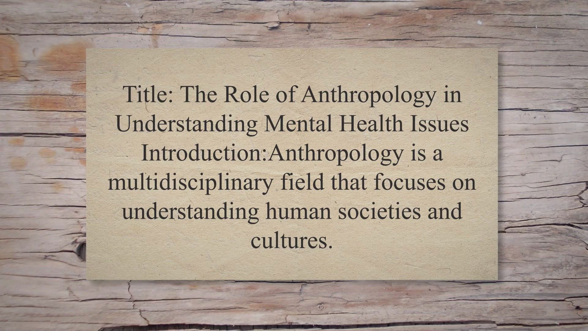 Title: The Role of Anthropology in Understanding Mental Health Issues