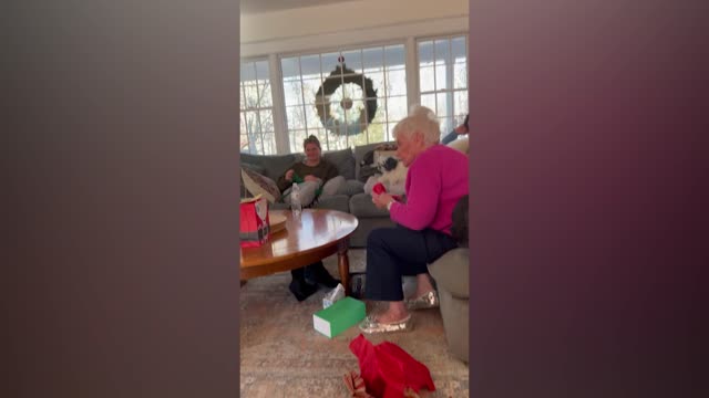A confused 95-year-old grandma looked at her granddaughter's ultrasound and said it "looked like something swimming" before leaping for joy when she realized she was set to become a great-grandmother for the first time. Molly Zampano Kuchta, 33, from Rowayton, Connecticut, discovered that she was pregnant around November time, and so she thought a Christmas pregnancy announcement would be the perfect gift for her grandma, Dorothy. To plan the big surprise, Molly bought her grandmother a "decoy gift": a red sweater that she would open and discover an ultrasound sitting on top. On December 25, Molly set her camera rolling as her grandmother started to open her present. Unfortunately for Molly and her sister Hannah, who also knew about the surprise, Dorothy pushed the ultrasound to one side and embraced her new red sweater instead. With some coaxing, Dorothy picked up the black and white image – but still, things didn't click. According to Hannah, 27, her grandmother said quizzically, "It looks like something's swimming." But then, as the pieces fell into place, an excitable Dorothy leaped into the air, her arms raised as she celebrated her first great-grandchild.