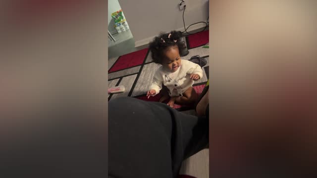 A baby girl has gone viral after she pulled a truly disgusted face when she accidentally touched her father's bare foot. In the hilarious video, nine-month-old Nae’lani Tru A’mour Gantz, who goes by Tru, can be seen trying to pull herself to her feet. As she did this, though, Tru, who was using a sofa for leverage, accidentally touched father Nasir's foot, which was not in a sock. The contact immediately made Tru change facial expressions, with the youngster's eyes widening and her face looking horrified at what she had just done. Mom Tajae Gantz, from Philadelphia, said she couldn't stop watching and laughing at the moment, which took place on September 21.