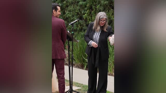 A bride who bonded with her groom over their love of escape rooms surprised him with a puzzle on the altar to release their rings. Ben Lepley and his wife, Michal, met at an arcade-themed bar in Silver Lake, California, in 2019, and over the years that followed, they bonded over a love of board games. This love of portable puzzles extended into escape rooms, too, with Ben and Michal seeing them as a perfect way to unwind and tackle a challenge together. And so, ahead of their wedding at Wallis Annenberg PetSpace, in Los Angeles – the same spot they had adopted a cat three years earlier – Michal knew she wanted to include a puzzle-themed surprise for an unsuspecting Ben. Michal called on the help of Ben's friends, seeing the surprise as a way to include more people in their big day, on October 5, 2024. On the day of the wedding itself, Michal then took the mic on the altar and told the backstory of her and Ben's love of escape rooms. Ben was handed a closed lock that held their rings, and when the shocked groom realized what was happening, he then saw a series of guests stand one by one, holding clues to reveal the combination. The guests were themed on characters from Ben's favorite board game, Unmatched, which he and Michal played often during COVID lockdowns, shortly after they had first met. Over the minutes that followed, Ben worked on the puzzle with the help of guests, while the couple's wedding videographer, Devan Shae, captured the wholesome surprise on video.