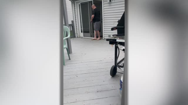 A first-time grandfather broke down in tears during a surprise meeting with is first grandchild, who he had waited 10 months to meet. Due to a combination of the coronavirus pandemic, cross-country separation, home moves and military duties, Mike Priebe, 53, had to wait longer than most to finally hold his granddaughter, Riley McLelland. Riley was born on July 27, 2019, at the Lejeune Naval Hospital, in Jacksonville, North Carolina, and due to her father’s military duties, Riley's family then moved to their current home in California. Having set up a new life there, Mike’s daughter Haley McLelland, 22, and her husband, Cameron, 22, who is in the Navy, were itching to get back to Ohio, where they both grew up as high school sweethearts. But due initially to Cameron's military duties and then, around March, the outbreak of the coronavirus across America, the couple could not get back to their hometown, where Mike still lives. But, come May, with it safe to travel and Cameron given permission to do so, Haley arranged for a surprise trip to her grandmother’s home in Strongsville, Ohio – roughly 2,000 miles from where they now live. Working with her grandmother and aunt, Haley had a friend pick her up and snuck around her grandmother’s home, where she placed Riley on the porch in her carrier. Then, as Mike was about to head out through the screen door, Haley started recording the emotional moment. First, Mike looked at the baby in shock, before eventually picking her up and crying uncontrollably during the embrace.