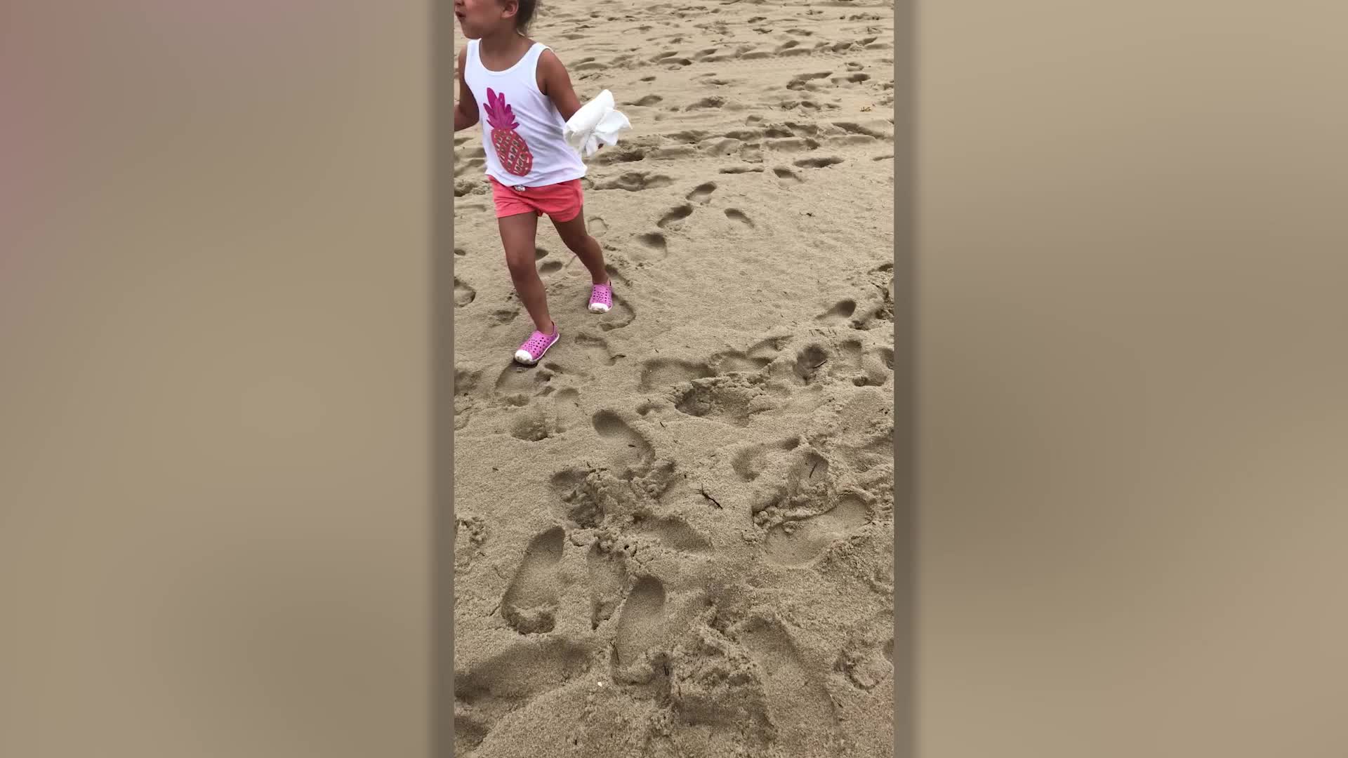 A six-year-old has been filmed marching out onto a wind and rain lashed beach to give a lifeguard some lunch. Adorable Regan Liddell spotted the lifeguard from the window of her hotel while holidaying in Ocean City, MD, USA, with her mom Kristen and dad Gregory. Feeling sorry for the man sat on an exposed lookout post with little protection from the harsh elements, little Regan went to the kitchen of the families holiday condo and knocked up a sandwich. And after talking her mom into walking with her down to the beach, she hand delivered it to the unsuspecting - but happy - lifeguard.