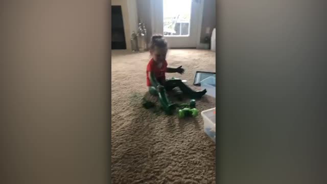 Little Girl Paints Herself Green Like Incredible Hulk Toy | Happily TV