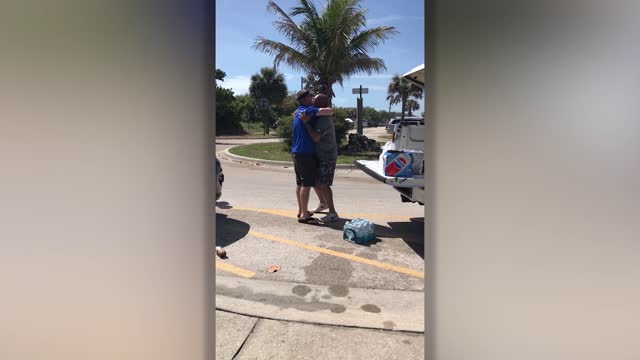 A military veteran was left screaming in shock when he was surprised with a heart-warming “brounion” by his best friend from his time overseas. John Taylor immediately dropped the water he was holding and jumped the arms of Justin Crockett, who he had not seen in more than three years – a moment that later went viral on social media. John, 53, a master sergeant combat medic with the U.S. Air Force, retired from active duty in 2008, before heading to Japan with his wife, Rachel, in 2012, as she was also in the Air Force at the time. It was during this time that he met Justin, 39, a chief master sergeant and security forces manager, and the pair became good friends. In 2015, however, John and Rachel were forced to head back to the U.S. because of health problems Rachel’s father was experiencing. They then settled in Melbourne, Florida, where John discovered a love of teaching and began working towards a college degree. For the next three years, John and Justin did not see each other. But when Justin heard John was graduating, he secretly flew from his new base in New Mexico to surprise John in Florida.