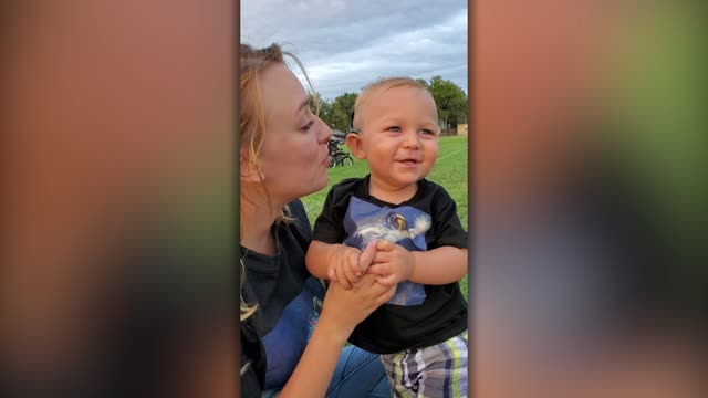 A family captured the adorable moment their toddler son couldn’t stop giggling when he heard his mom sing for the first time. Connelly Benton, aged 13 months, celebrated his ‘hearing birthday’ on August 31 when he was fitted with a set of hearing aids to combat his bilateral hearing loss. His parents, Jordy and Tanner Benton, from Hutchinson, Kansas, took their son for a walk so he could use his hearing aids to hear the sounds of the local neighborhood for the first time. As they approached a playing field, Connelly was happy to listen to the sounds of a football practice taking place nearby. It was then that Jordy, 27, sat down with her son and began singing “You Are My Sunshine,” also signing the words to each verse at the same time. As Jordy sang, Connelly giggled away in delight, unable to control his sweet laught as his mother continued to sing.