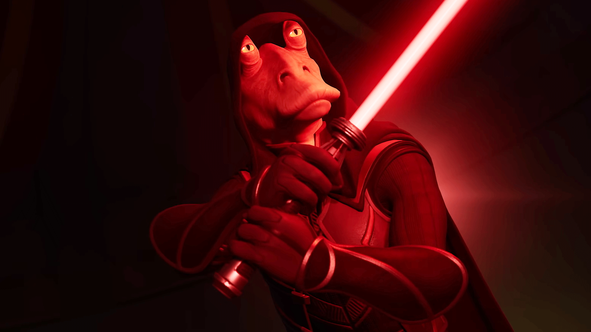 Check out the Darth Jar Jar Reveal Trailer for Fortnite, the hit third-person battle royale developed by Epic Games. Players will be able to play as the legendary and elusive Darth Jar Jar by unlocking the ability to purchase this outfit set by earning XP across any experience in Fortnite. Darth Jar Jar is available now for Fortnite.