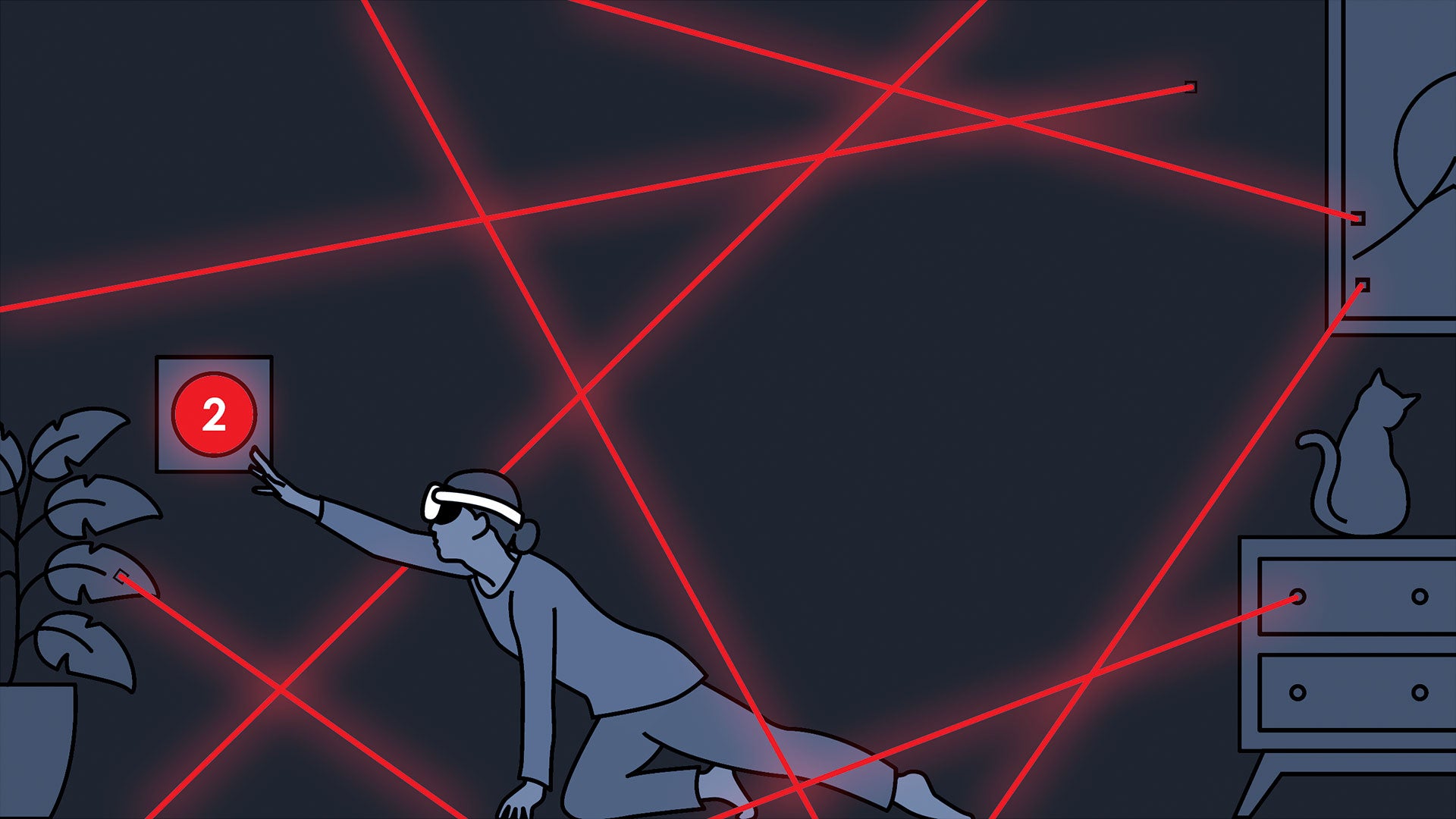 From the creator of Cubism comes Laser Dance, a mixed reality game that turns your living room into a laser obstacle course straight from a spy film! A level in Laser Dance consists of a sequence of laser patterns, which adapt to your living room size and layout. Players move between two buttons on opposite ends of the room, and dance, dodge, and crawl their way to the finish line with each button press. Easy to learn but hard to master - Laser Dance’s deceptively simple gameplay makes for a perfect party game to get both newcomers and seasoned VR players moving in mixed reality. Laser Dance is launching in Early Access in Fall 2025 for Meta Quest.