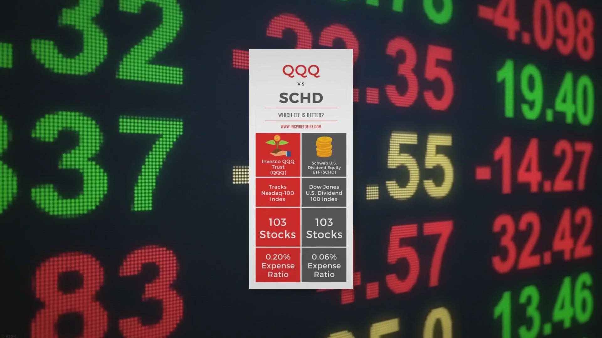 The primary difference between QQQ vs SCHD is the company that offers the ETF. Charles Schwab offers SCHD, while Invesco offers QQQ.