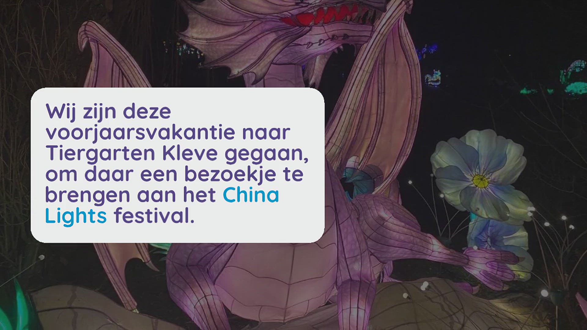 Wij zijn deze voorjaarsvakantie naar Tiergarten Kleve gegaan, om daar een bezoekje te brengen aan het China Lights festival. Dit wordt dit jaar in deze dierentuin gehouden, ter ere van de 65e verjaardag van de dierentuin. En ik kan je vertellen: dit is echt een magische ervaring! Ik ben gewoon even aan het zoeken welke woorden ik ervoor moet vinden, maar het is echt zó mooi! Lees daarom zeker deze blog en geniet van de vele foto’s en bekijk ook zeker ons filmpje!