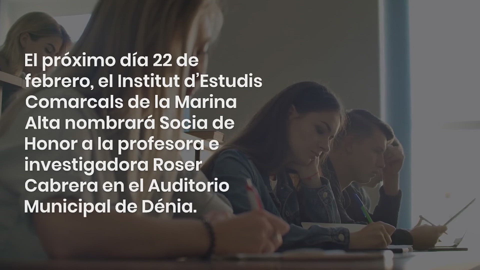 El próximo día 22 de febrero, el Institut d’Estudis Comarcals de la Marina Alta nombrará Socia de Honor a la profesora e investigadora Roser Cabrera en el Auditorio Municipal de Dénia.