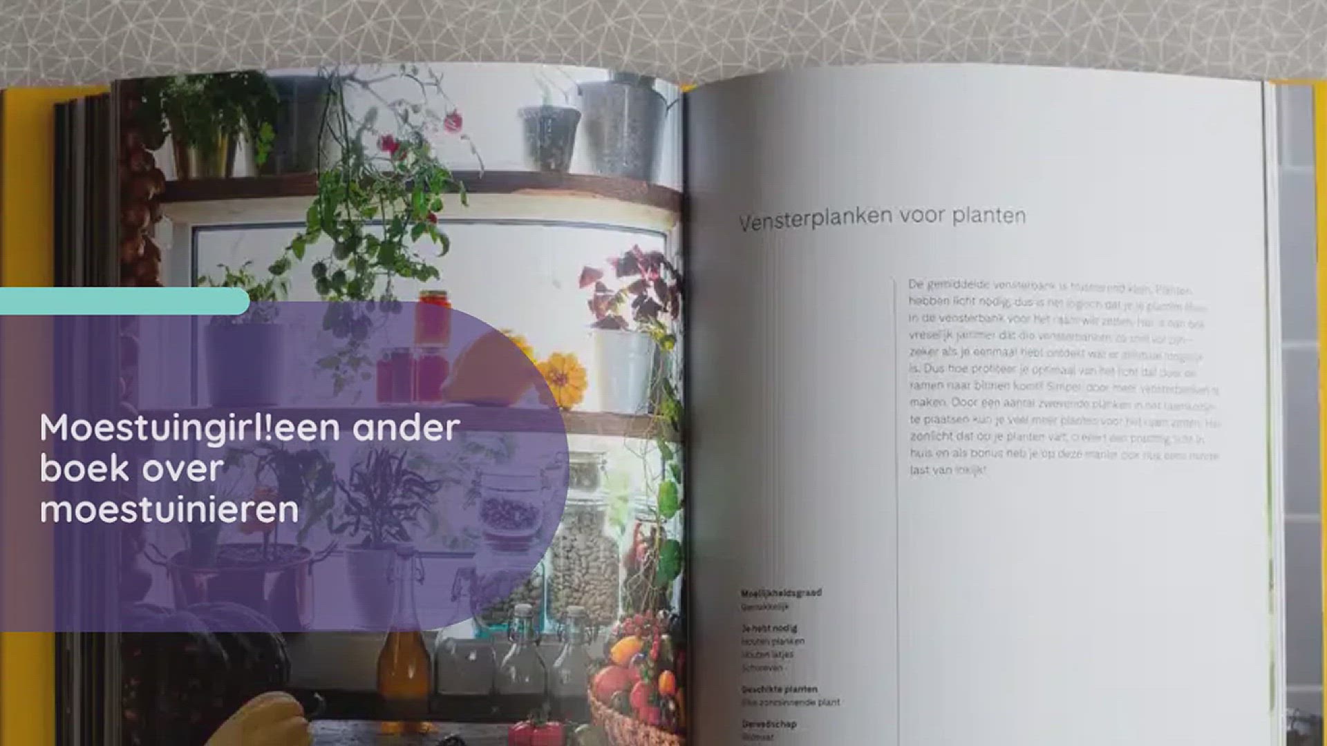 “Een knalgeel boek over moestuinieren, dat is vast een vrolijk boek” dacht ik. Toen Moestuingirl! eenmaal binnen was liep ik wat achter met voorzaaien voor onze moestuin. Dat worden geen leuke foto’s van het boek in de moestuin, want daar is het nog kaal. Totdat ik het boek open deed. Het is geen doorsnee boek over moestuinieren. Het is een boek vol originele ideeën om buiten, maar ook binnen je kruiden, groenten én fruit te kweken.