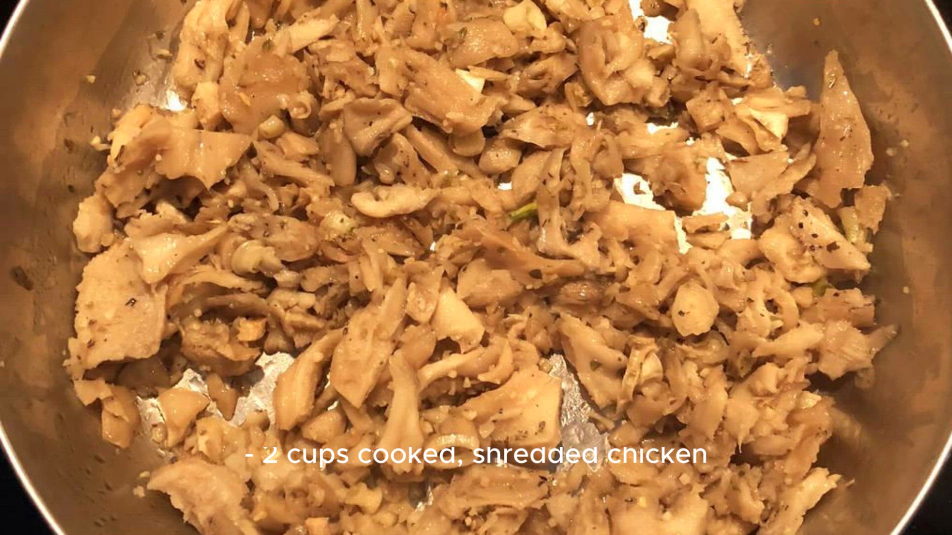- 2 cups cooked, shredded chicken
