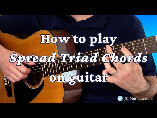 See the full tutorial here: https://jgmusiclessons.com/how-to-play-spread-triad-chords-on-the-guitar-chord-charts-and-examples/ 📘 Get the free ebook “The Guitarist’s Practice Blueprint” here: https://subscribepage.io/guitar-practice-guide 🎸 Kickstart your playing with "Guitar Essentials: A step by step guide to learning guitar" : https://jgmusiclessons.com/store/ebooks/guitar-essentials/ 👍 Please like and subscribe to the channel for more guitar lessons like these! Thanks for watching and all the best! @jgmusiclessons