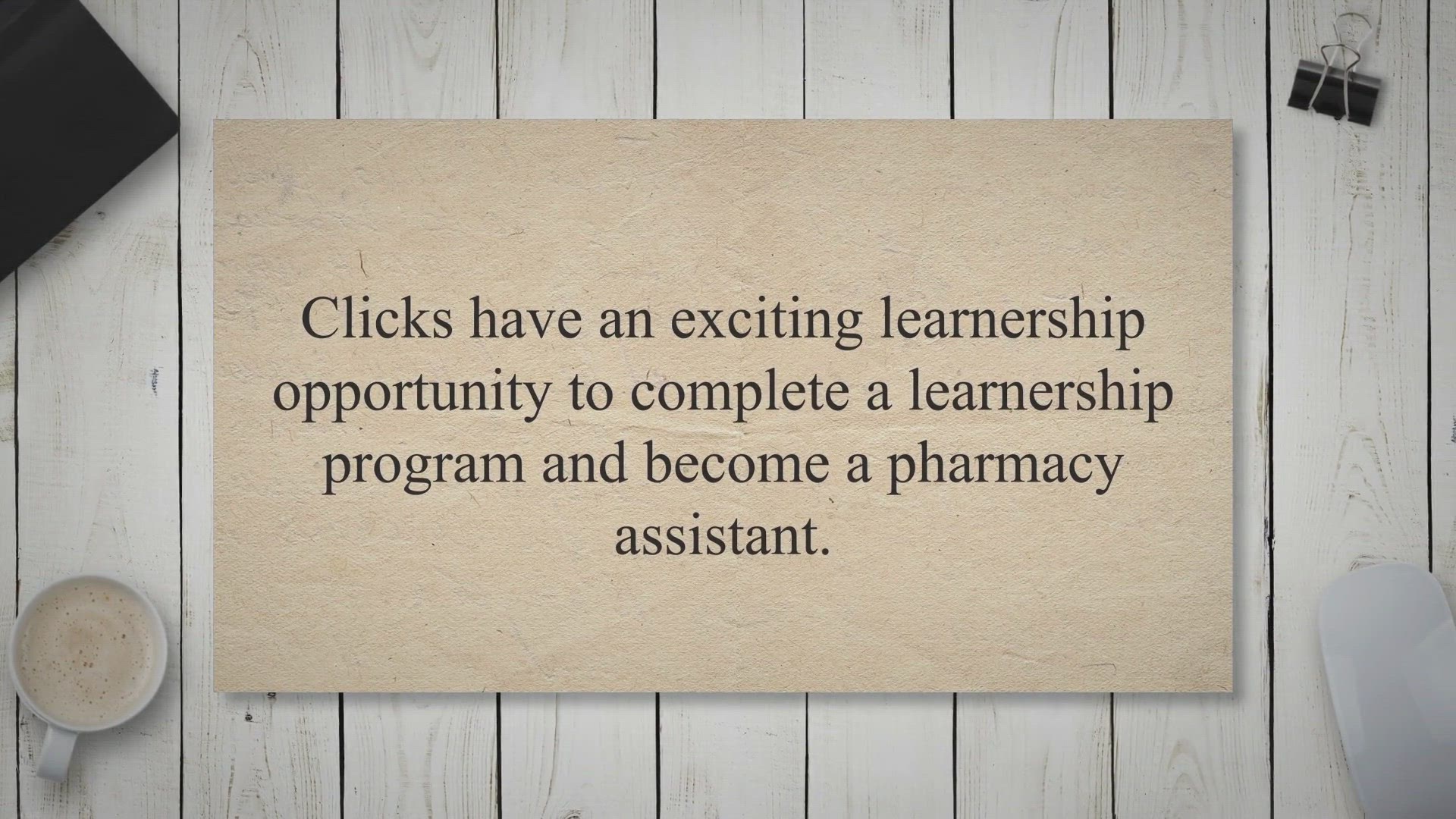 Clicks : Pharmacist Assistant Learnership. Clicks have an exciting learnership opportunity to complete a learnership program and become a pharmacy assistant. Job Description The learner must successfully complete the Learnership Training Contracts in a registered Clicks Pharmacy and under the supervision of an authorised tutor.