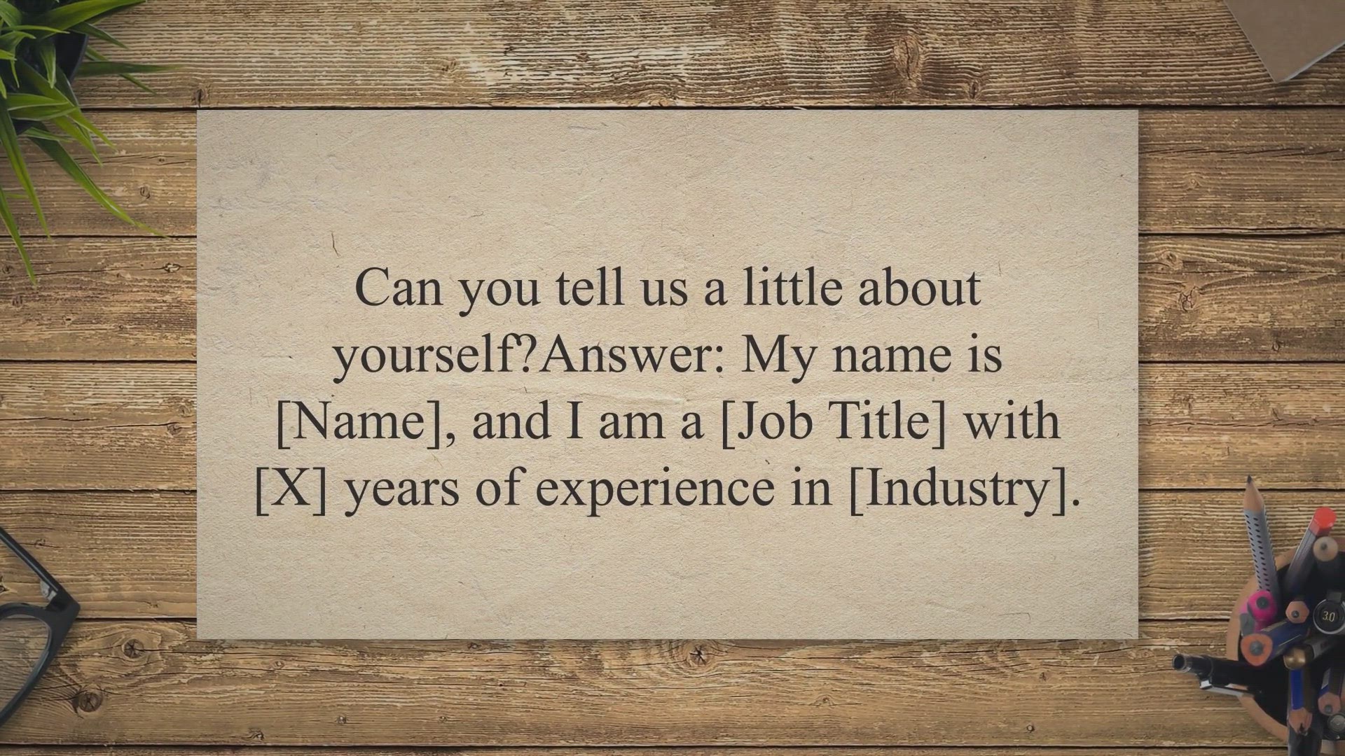 Twenty Common Interview Questions and Answers. 1. Can you tell us a little about yourself?Answer: My name is [Name], and I am a [Job Title] with [X] years of experience in [Industry].