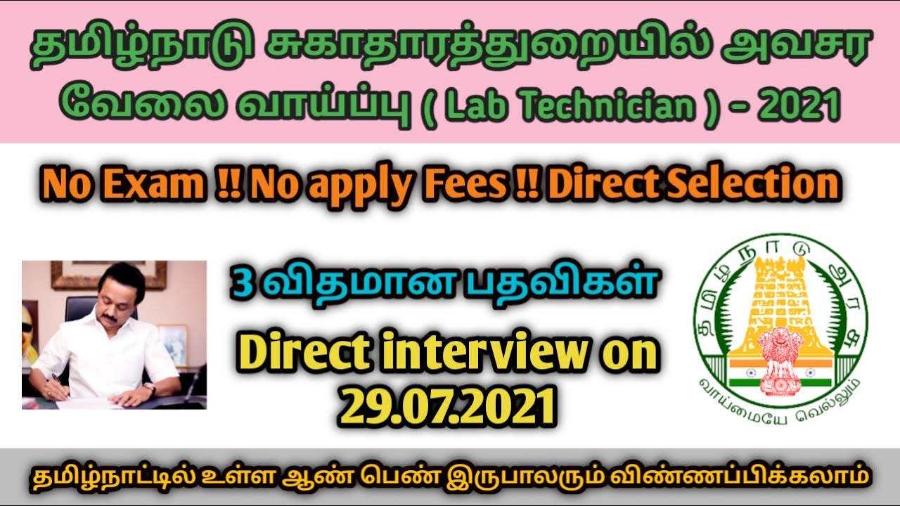 🔥 அரசு சுகாதாரத் துறையில் அவசர வேலை வாய்ப்பு - Interview only - TN Govt jobs 2021