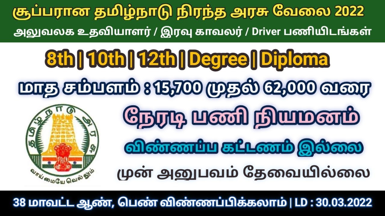 சூப்பாரான தமிழக அரசு நிரந்தர வேலை 2022 | அலுவலக உதவியாளர் | No Exam | Arasu velai 2022