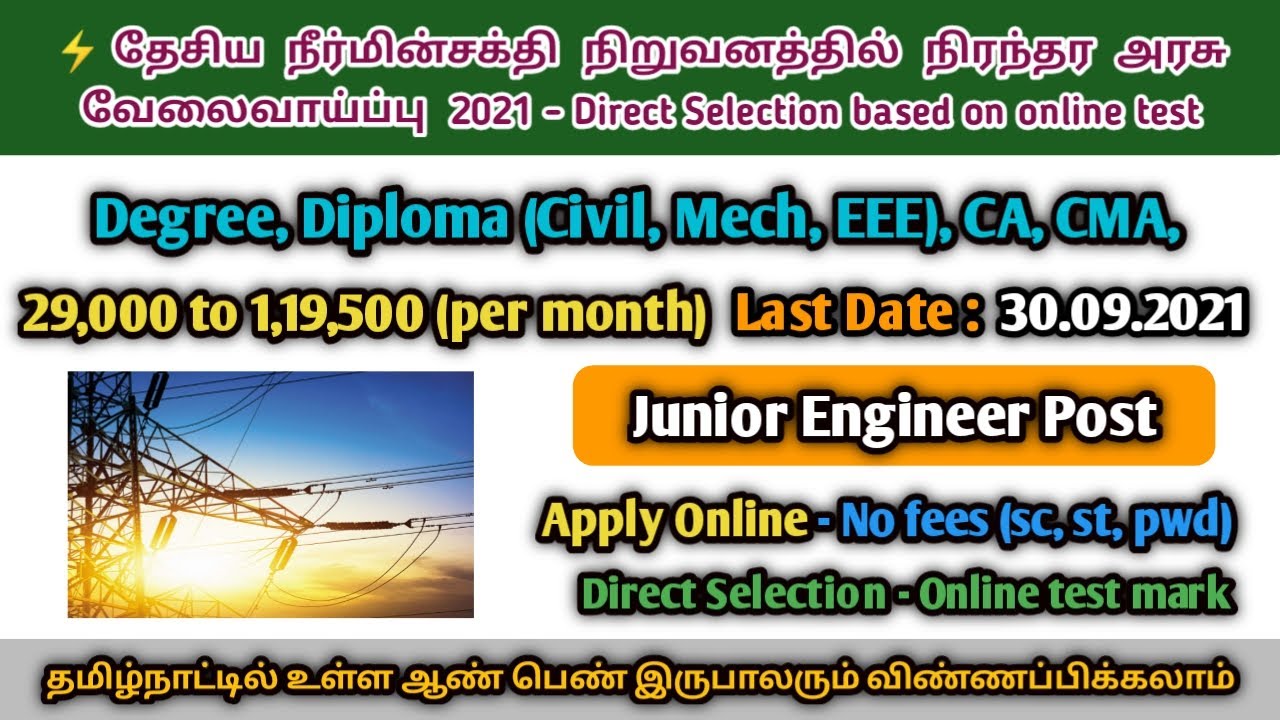ЁЯФе рооро┐ройрпНроЪро╛ро░родрпН родрпБро▒рпИропро┐ро▓рпН Junior Engineer ро╡рпЗро▓рпИро╡ро╛ропрпНрокрпНрокрпБ 2021 | Freshers | Apply Online