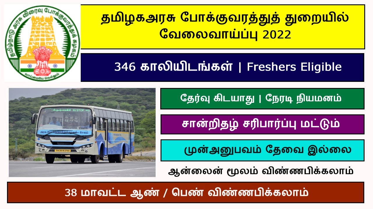 TNSTC - தமிழ்நாடு போக்குவரத்து துறை வேலைவாய்ப்பு 2022 | 346 vacancies | Apply Now