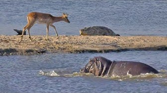 A standoff in nature is not uncommon. We’ve seen a lot of animal species who go up against each other in a standoff over territory, food, mates, etc. But to see a standoff between an impala, a crocodile and a hippo – now that’s the kind of standoffs that you don’t find often, and to be able to get it on film, is even better!