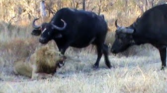 Just a jam packed action video of 3 huge male lions killing a lone male, when the calls of distress from the lone lion attracts a nearby herd of buffalo, this herd runs in to the action, causing the attacking lions to flee. But the luck of the lone lion goes worse when the buffaloes attack him too.