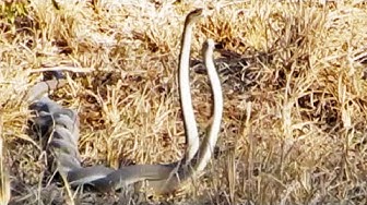 Amazing and extremely rare video of Fighting black mambas right next to the road!
