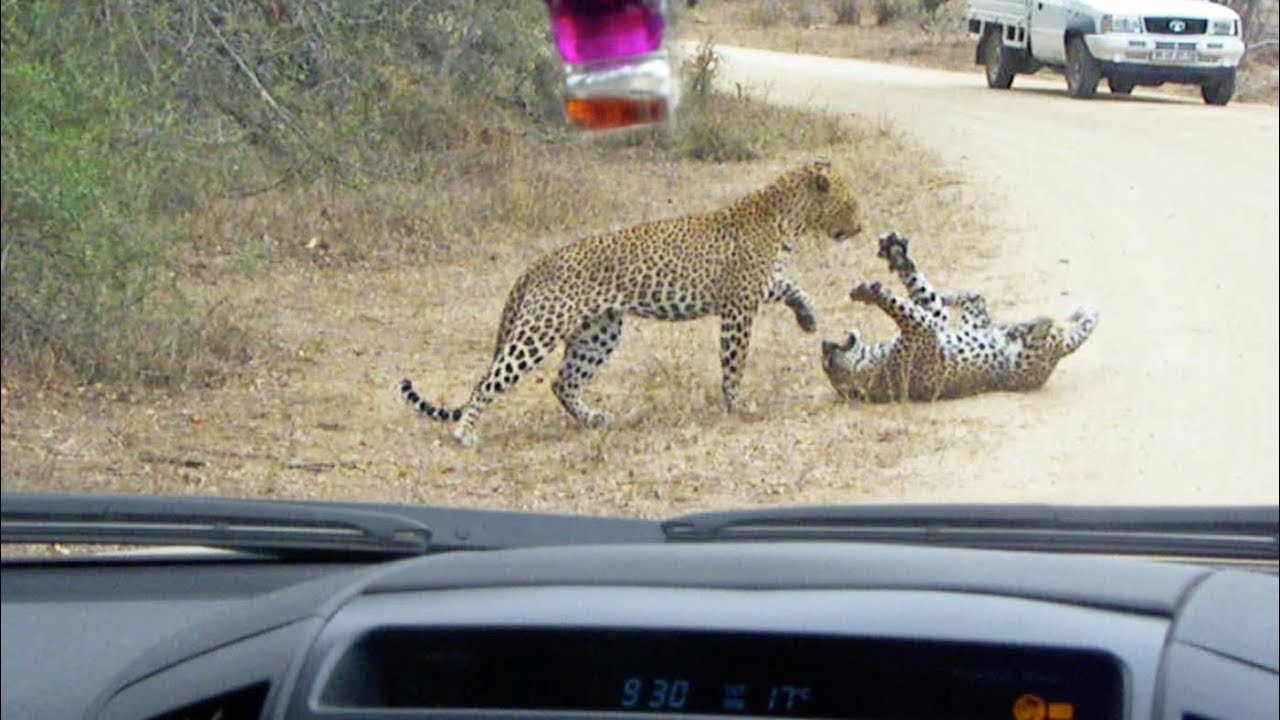 Leopard Death Battle in the Road!