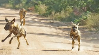 Watch how this lioness smells her way to a pack of Wild Dogs over 4kms away! When she finally finds them, she gives them the fright of their lives.