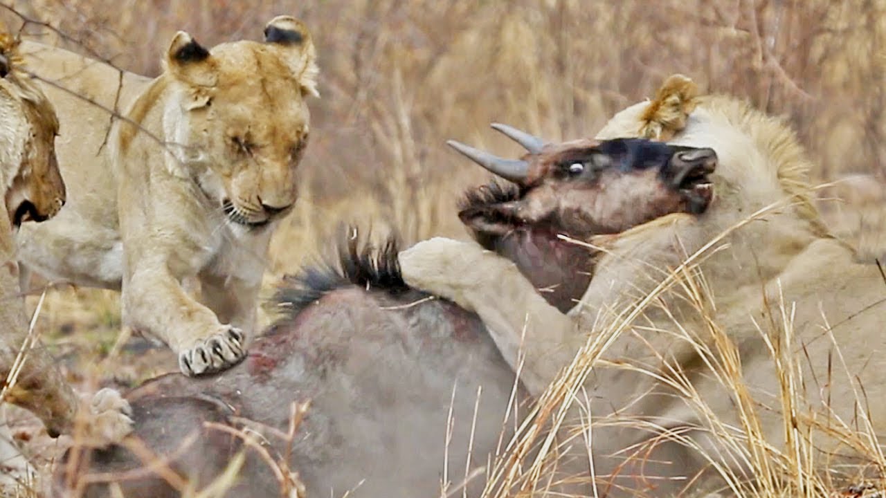 Wildebeest Escapes Twice From Distracted Lions