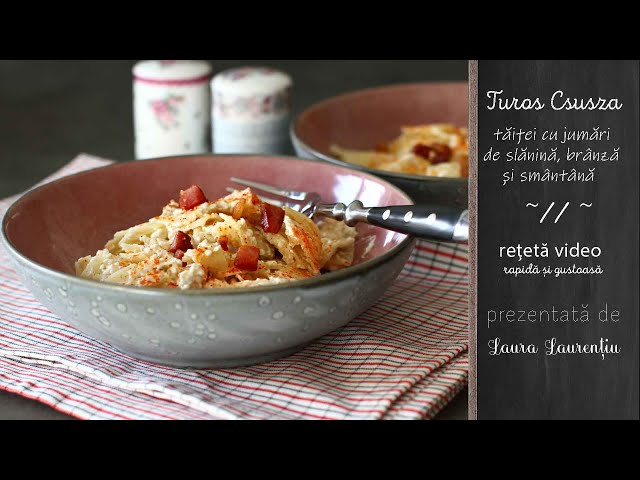 și anume tu roșciuso sau tăiței lați cu jumări de slănină, brânză de vaci și smântână