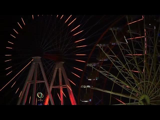 LIGHT DISPLAY OF OBSERVATION WHEEL IN MOTION AT NIGHT