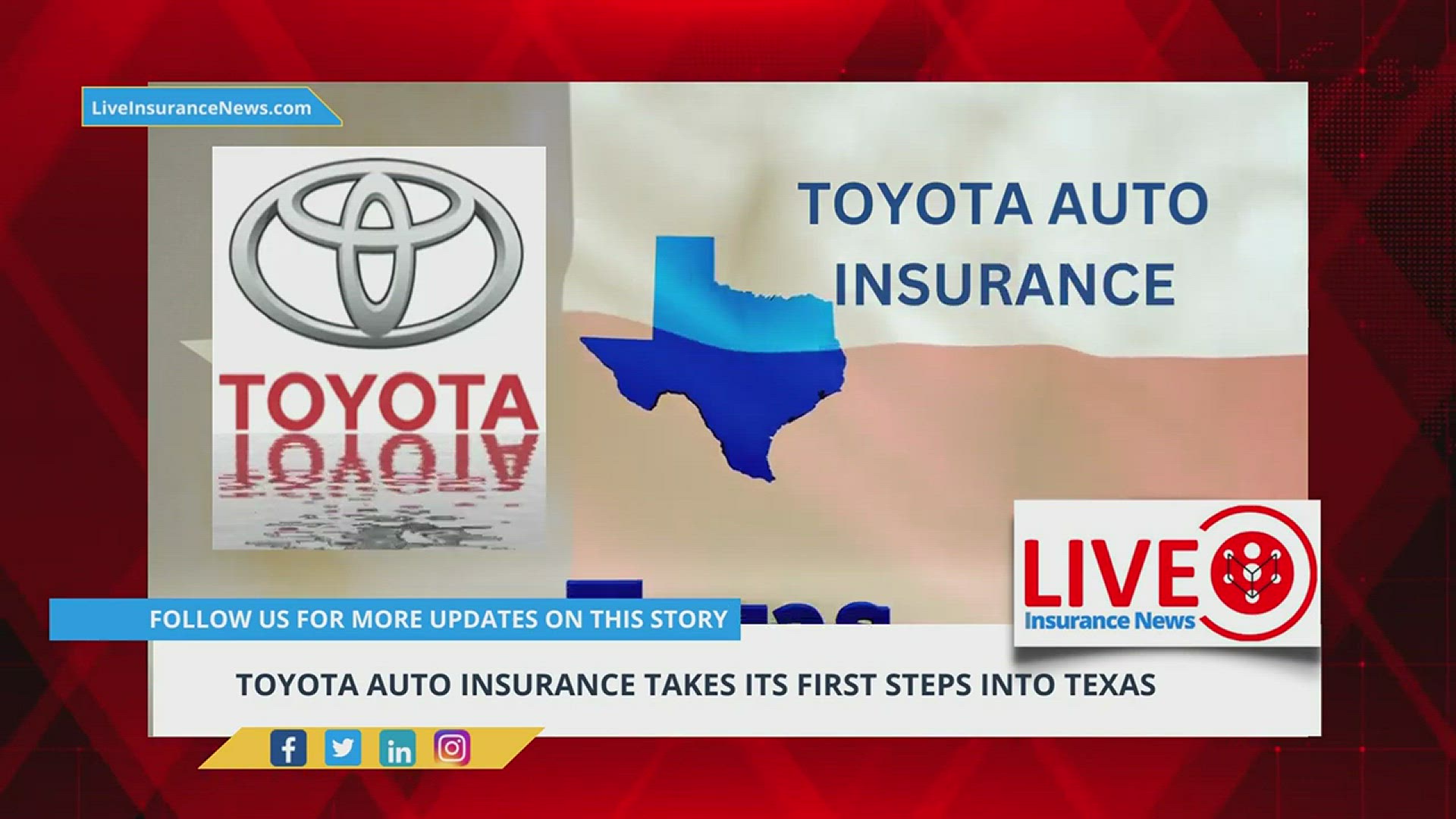 [Toyota auto insurance](https://www.liveinsurancenews.com/toyota-auto-insurance-texas/8555290/ ) (TAI), the automaker’s branded coverage product which launched last December, has now announced that it is moving into Texas for the first time - For Full Article... There are a lot of insurance news sites out there, but only one can deliver the latest business news for the [Property & Casualty insurance industry](https://www.liveinsurancenews.com). Latest breaking news, analysis and intelligence on the global (re)insurance and specialty markets. health insurance news for both agents and consumers. #insurancenews #lin #liveinsurancenews