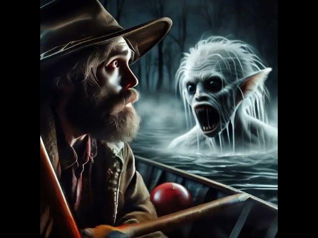 fisherman in boat with creature from the lake