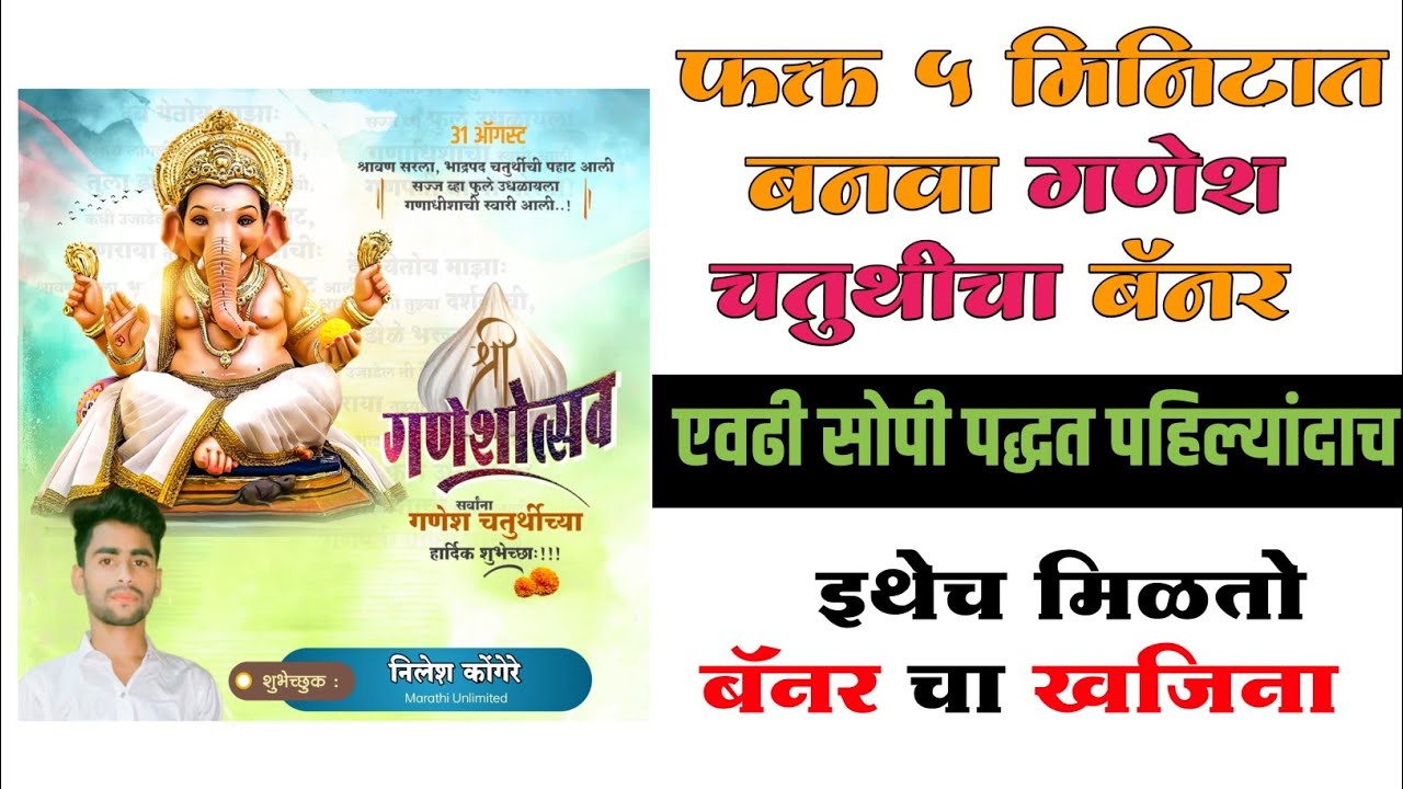 फक्त ५ मिनिटात बनवा गणेश जयंती बॅनर | How to create Ganapati bappa moraya banner 5 minutes