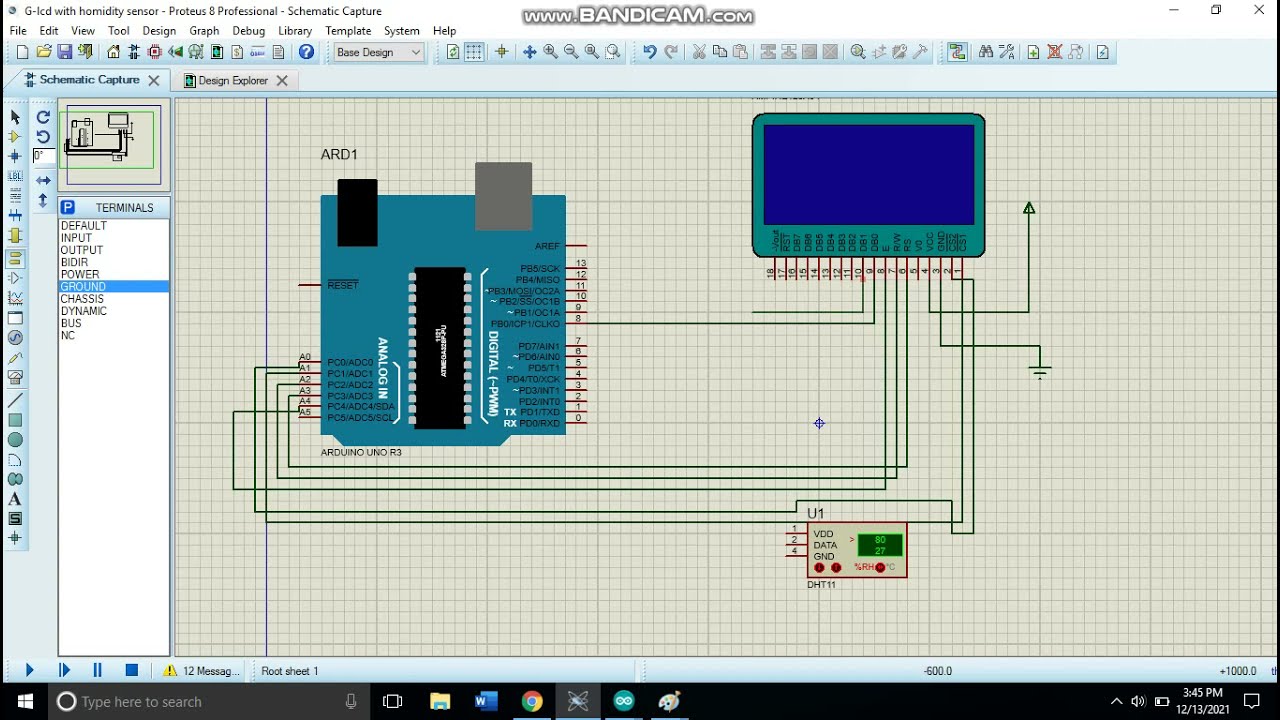 How to Simulate DHT11 Sensor with G-LCD in Proteus?