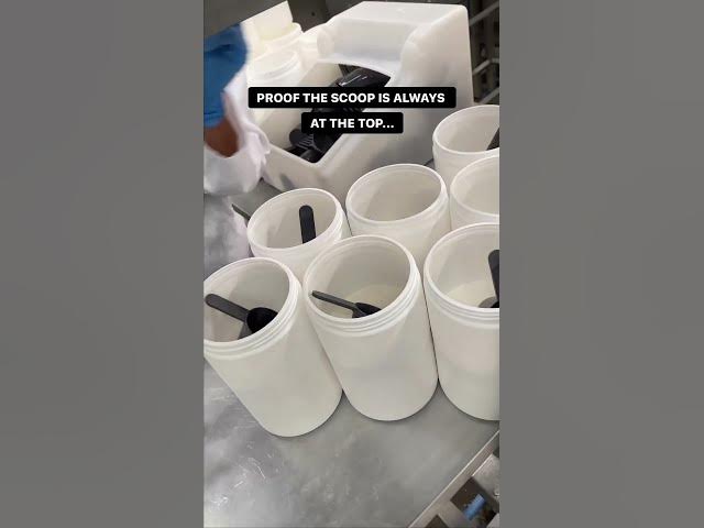 proof the scoops are at the top. behind the scene at myprotein factory
