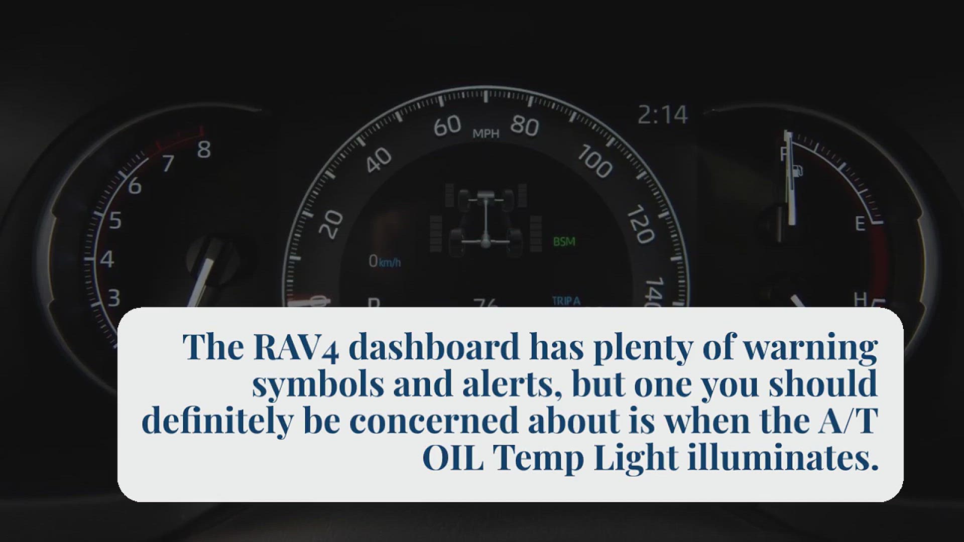 The RAV4 dashboard has plenty of warning symbols and alerts, but one you should definitely be concerned about is when the A/T OIL Temp Light illuminates.