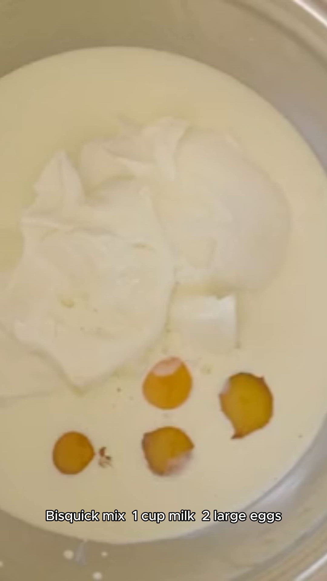 ### Ingredients: - **2 cups** Bisquick mix - **1 cup** milk - **2 large eggs**