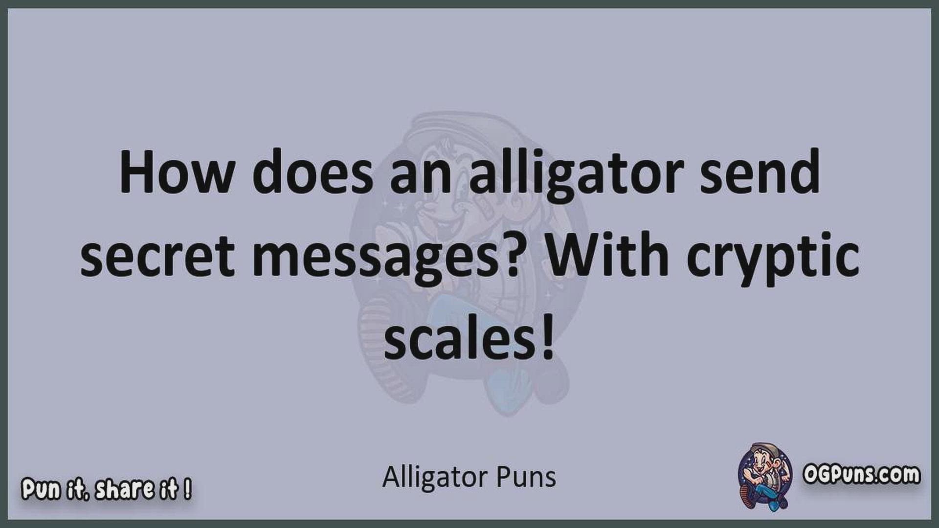 Delve into the delightful world of Alligator Puns ! Here, you'll find an entertaining mix of jokes, puns, quips, and wordplay. Each piece is crafted to offer a quick escape into humor, perfect for a light-hearted moment in any day. Whether you're seeking a chuckle or a clever twist on familiar themes, this collection promises to deliver smiles and laughter. Embrace the lighter side of life with humor that's both witty and refreshing."