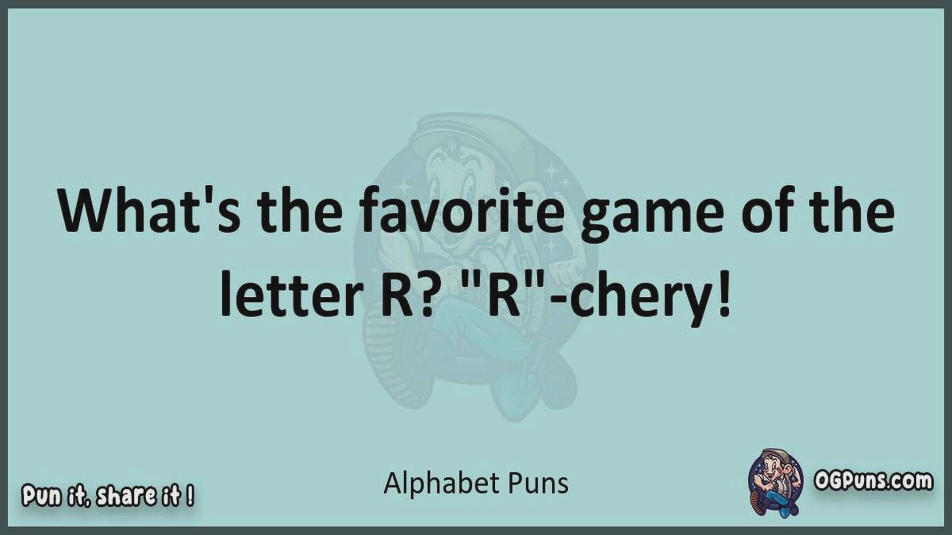 Delve into the delightful world of Alphabet Puns ! Here, you'll find an entertaining mix of jokes, puns, quips, and wordplay. Each piece is crafted to offer a quick escape into humor, perfect for a light-hearted moment in any day. Whether you're seeking a chuckle or a clever twist on familiar themes, this collection promises to deliver smiles and laughter. Embrace the lighter side of life with humor that's both witty and refreshing."