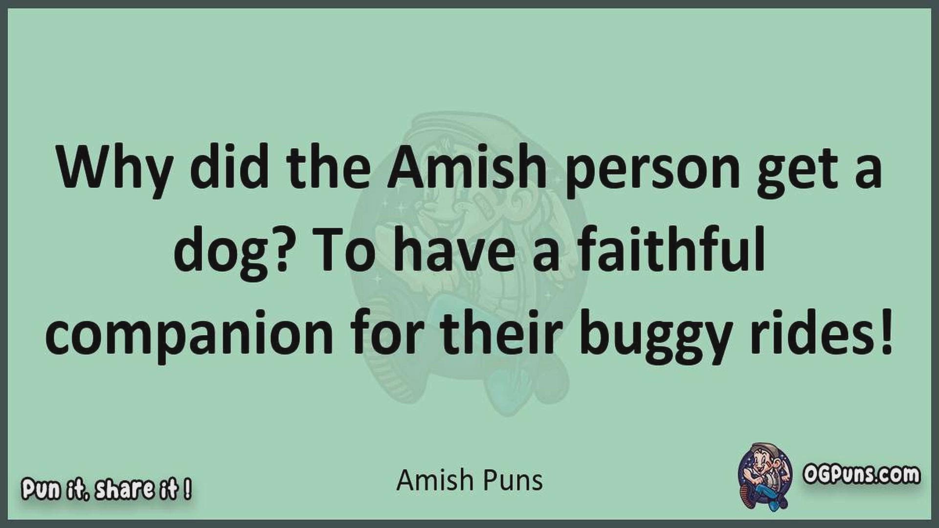 Delve into the delightful world of Amish Puns ! Here, you'll find an entertaining mix of jokes, puns, quips, and wordplay. Each piece is crafted to offer a quick escape into humor, perfect for a light-hearted moment in any day. Whether you're seeking a chuckle or a clever twist on familiar themes, this collection promises to deliver smiles and laughter. Embrace the lighter side of life with humor that's both witty and refreshing."