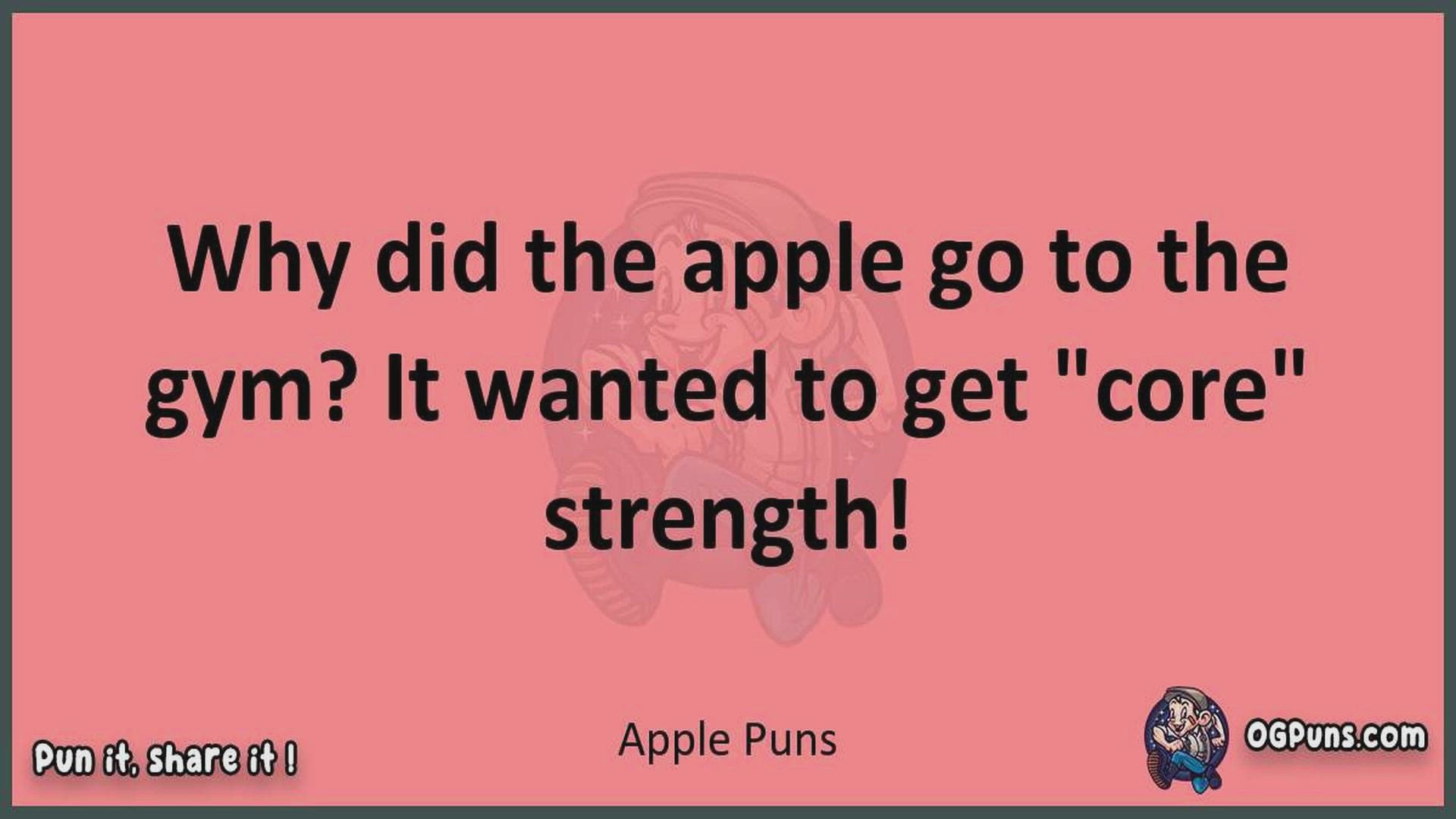 Delve into the delightful world of Apple Puns ! Here, you'll find an entertaining mix of jokes, puns, quips, and wordplay. Each piece is crafted to offer a quick escape into humor, perfect for a light-hearted moment in any day. Whether you're seeking a chuckle or a clever twist on familiar themes, this collection promises to deliver smiles and laughter. Embrace the lighter side of life with humor that's both witty and refreshing."