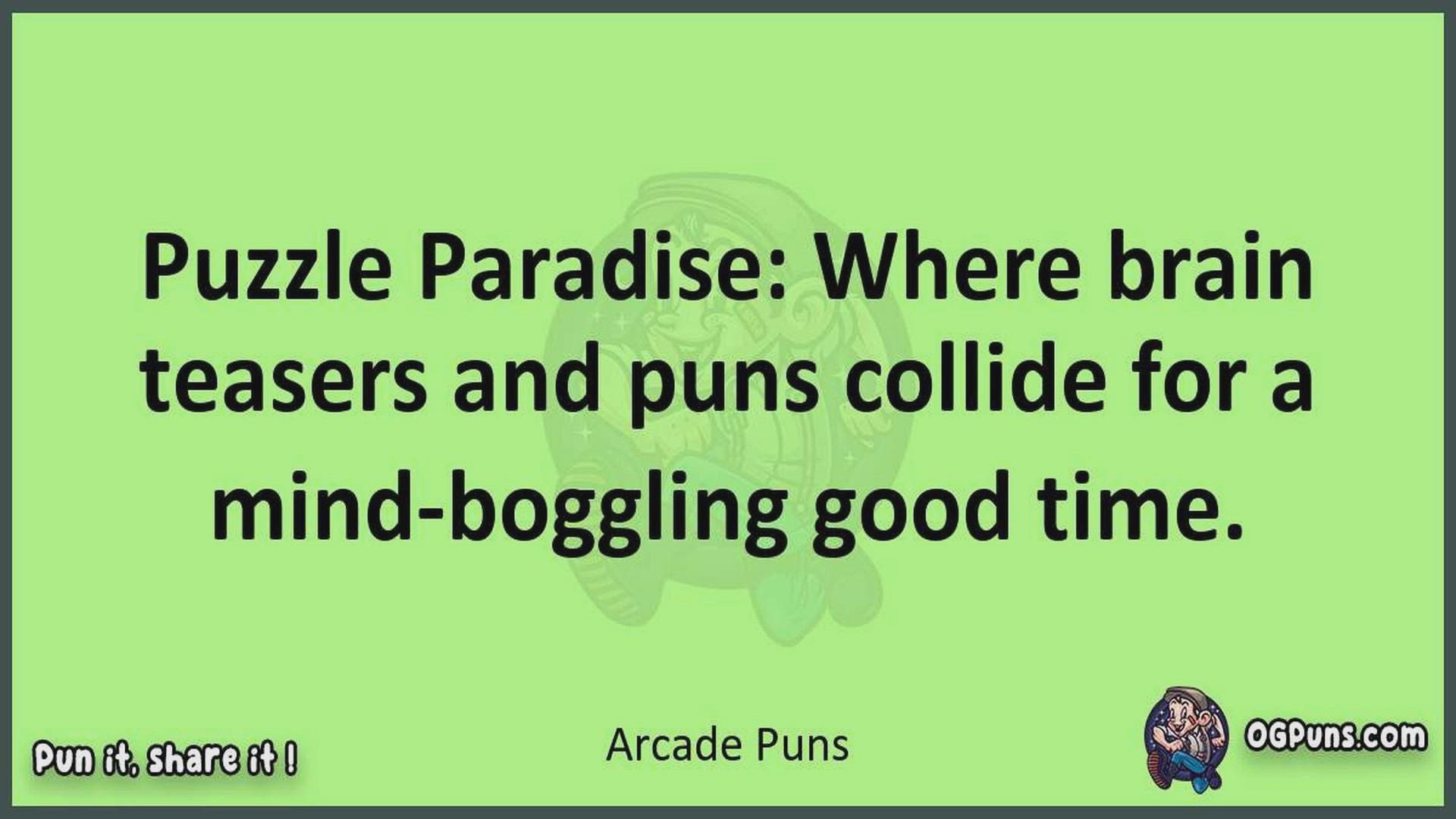 Delve into the delightful world of Arcade Puns ! Here, you'll find an entertaining mix of jokes, puns, quips, and wordplay. Each piece is crafted to offer a quick escape into humor, perfect for a light-hearted moment in any day. Whether you're seeking a chuckle or a clever twist on familiar themes, this collection promises to deliver smiles and laughter. Embrace the lighter side of life with humor that's both witty and refreshing."