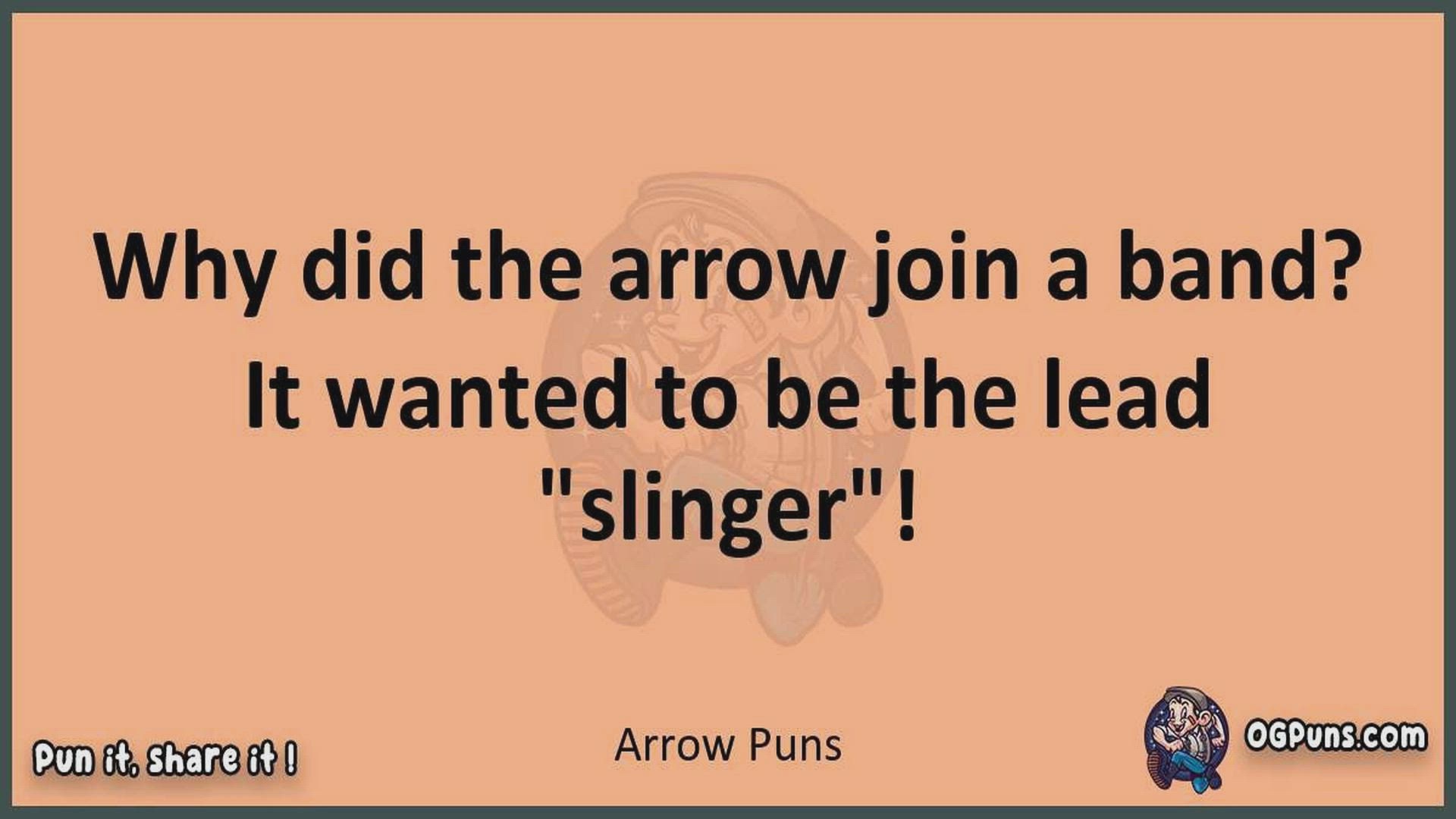 Delve into the delightful world of Arrow Puns ! Here, you'll find an entertaining mix of jokes, puns, quips, and wordplay. Each piece is crafted to offer a quick escape into humor, perfect for a light-hearted moment in any day. Whether you're seeking a chuckle or a clever twist on familiar themes, this collection promises to deliver smiles and laughter. Embrace the lighter side of life with humor that's both witty and refreshing."