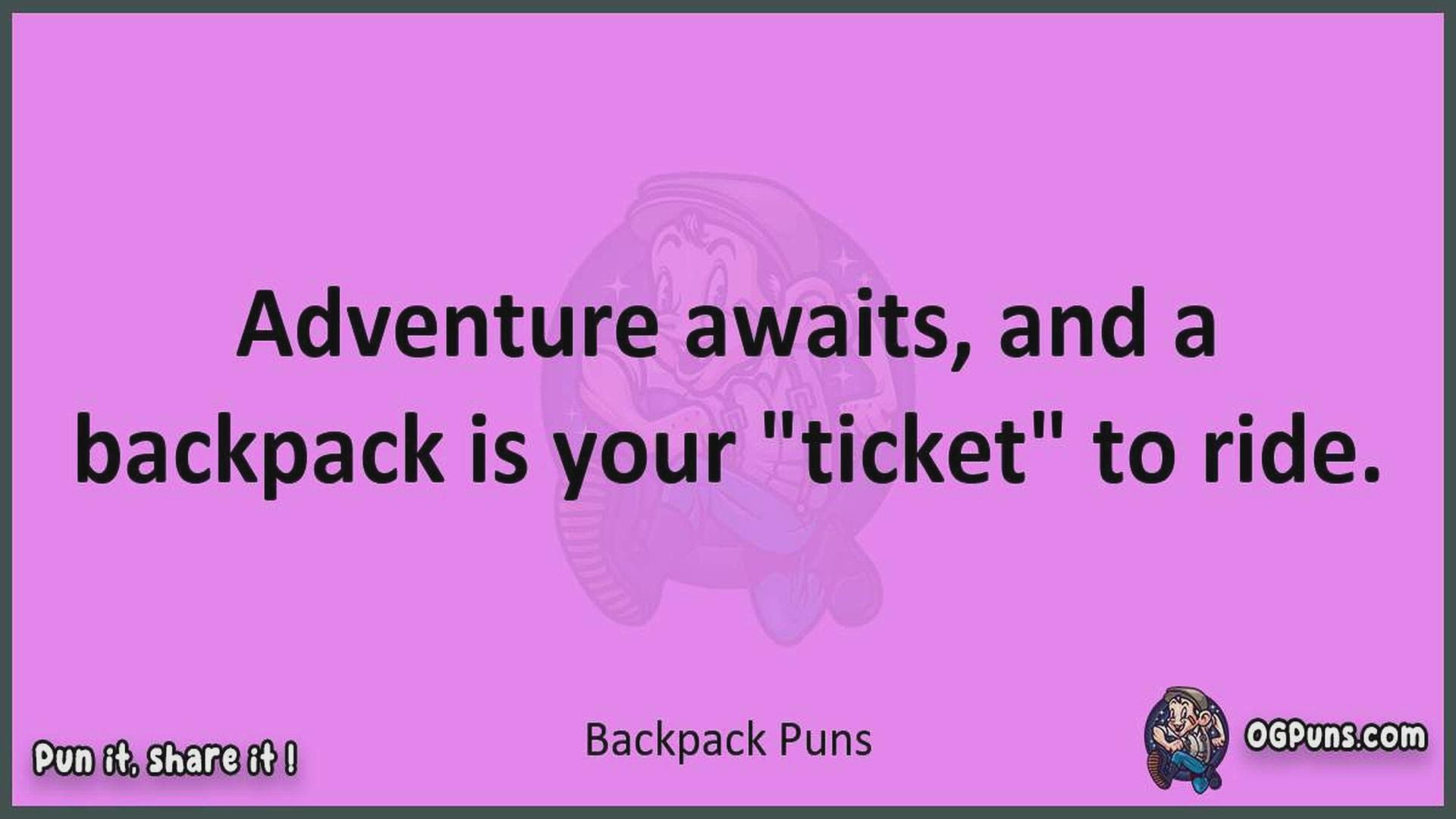 Delve into the delightful world of Backpack Puns ! Here, you'll find an entertaining mix of jokes, puns, quips, and wordplay. Each piece is crafted to offer a quick escape into humor, perfect for a light-hearted moment in any day. Whether you're seeking a chuckle or a clever twist on familiar themes, this collection promises to deliver smiles and laughter. Embrace the lighter side of life with humor that's both witty and refreshing."