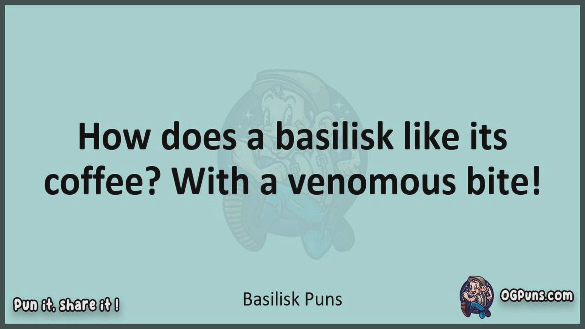 Delve into the delightful world of Basilisk Puns ! Here, you'll find an entertaining mix of jokes, puns, quips, and wordplay. Each piece is crafted to offer a quick escape into humor, perfect for a light-hearted moment in any day. Whether you're seeking a chuckle or a clever twist on familiar themes, this collection promises to deliver smiles and laughter. Embrace the lighter side of life with humor that's both witty and refreshing."