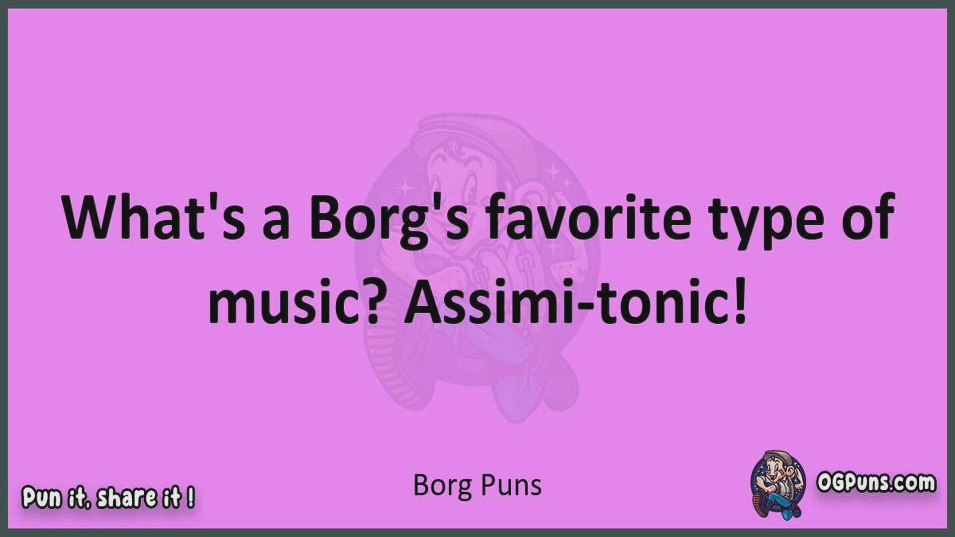 Delve into the delightful world of Borg Puns ! Here, you'll find an entertaining mix of jokes, puns, quips, and wordplay. Each piece is crafted to offer a quick escape into humor, perfect for a light-hearted moment in any day. Whether you're seeking a chuckle or a clever twist on familiar themes, this collection promises to deliver smiles and laughter. Embrace the lighter side of life with humor that's both witty and refreshing."