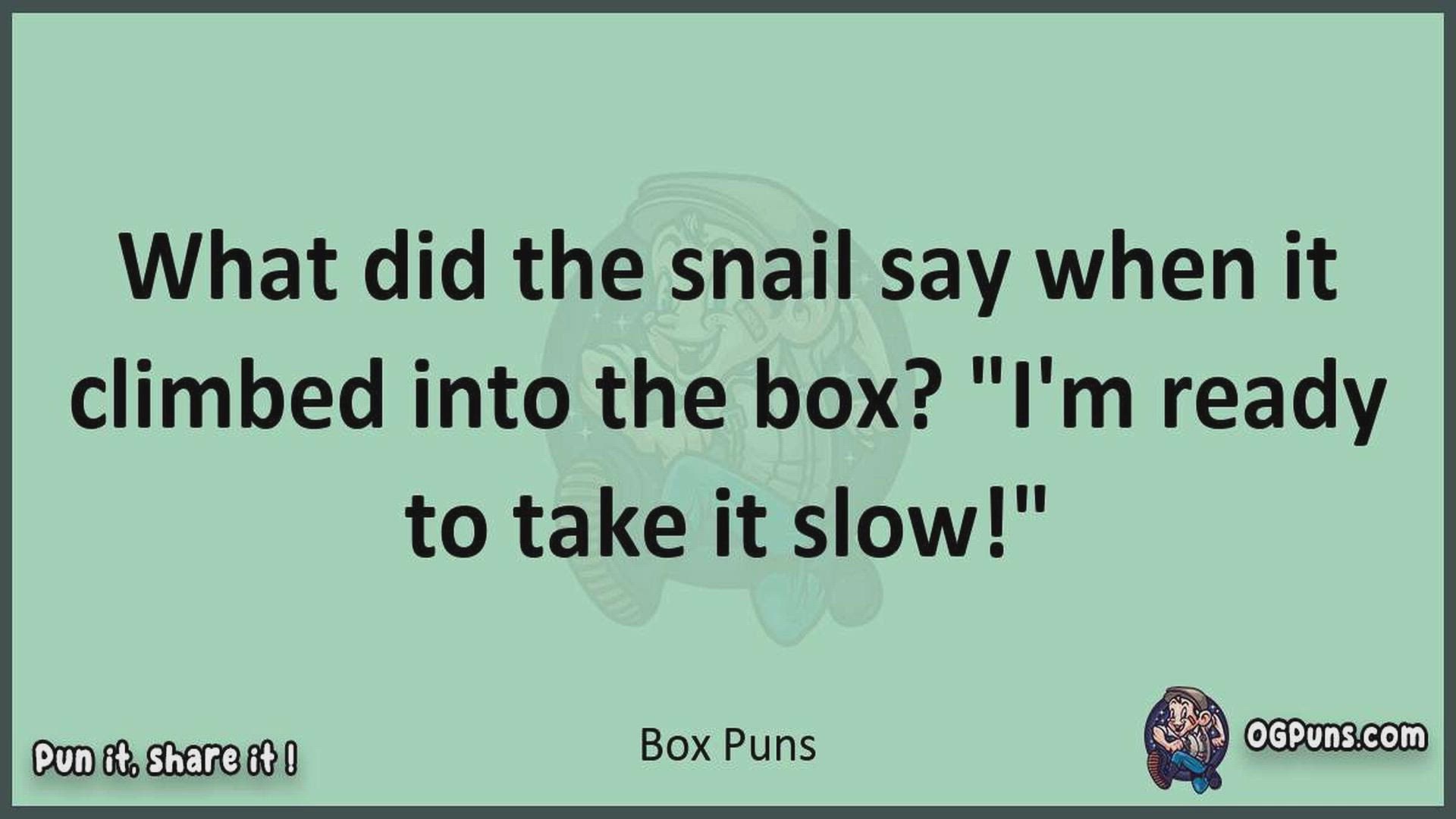 Delve into the delightful world of Box Puns ! Here, you'll find an entertaining mix of jokes, puns, quips, and wordplay. Each piece is crafted to offer a quick escape into humor, perfect for a light-hearted moment in any day. Whether you're seeking a chuckle or a clever twist on familiar themes, this collection promises to deliver smiles and laughter. Embrace the lighter side of life with humor that's both witty and refreshing."