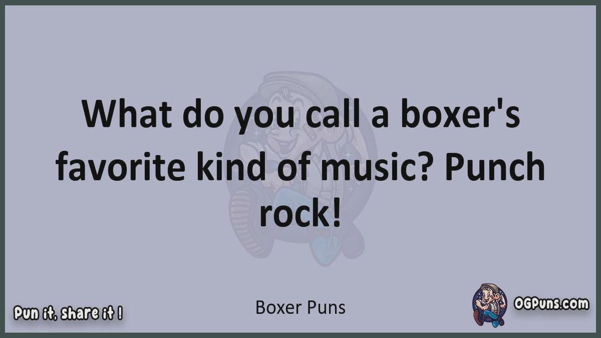 Delve into the delightful world of Boxer Puns ! Here, you'll find an entertaining mix of jokes, puns, quips, and wordplay. Each piece is crafted to offer a quick escape into humor, perfect for a light-hearted moment in any day. Whether you're seeking a chuckle or a clever twist on familiar themes, this collection promises to deliver smiles and laughter. Embrace the lighter side of life with humor that's both witty and refreshing."