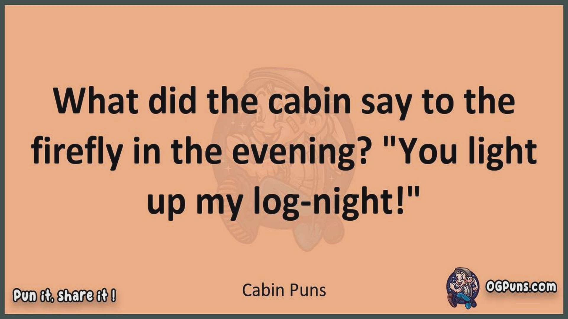 Delve into the delightful world of Cabin Puns ! Here, you'll find an entertaining mix of jokes, puns, quips, and wordplay. Each piece is crafted to offer a quick escape into humor, perfect for a light-hearted moment in any day. Whether you're seeking a chuckle or a clever twist on familiar themes, this collection promises to deliver smiles and laughter. Embrace the lighter side of life with humor that's both witty and refreshing."